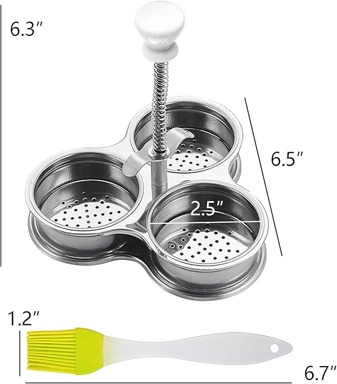 • 【Non-Stick & Easy to Clean】: Use the matching oil brush to apply a layer of oil before use to ensure a good non-stick effect, and pull the spring handle to easily release the eggs after cooking, making the egg poacher cups cleaner and easier to clean.