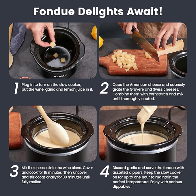 • [EXPANDABLE COLLECTION] KOOC slow cookers come in a wide range of sizes and colors to suit different cooking needs. From compact 0.65 Quart models perfect for singles or couples, to larger 8.5 Quart options ideal for families or entertaining guests, there's a slow cooker for everyone