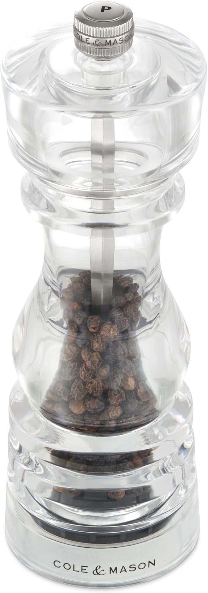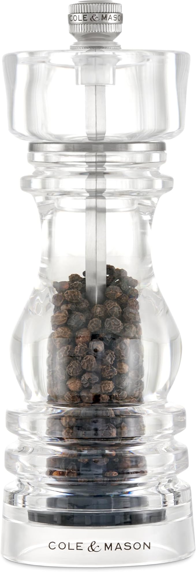 Cole & Mason London Refillable Spice Mill - Kitchen & Home Accessory - Table Black Pepper Grinder - Pepper Mill with Carbon Steel Mechanism - 7", Acrylic