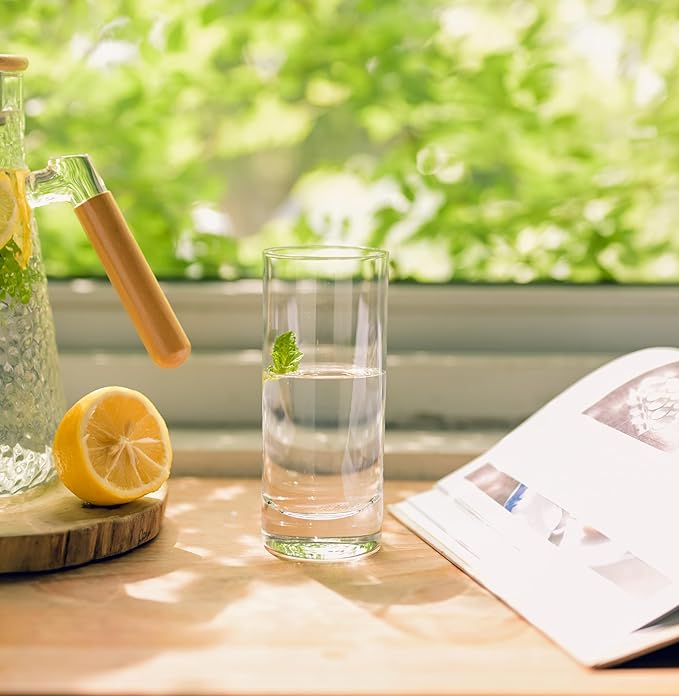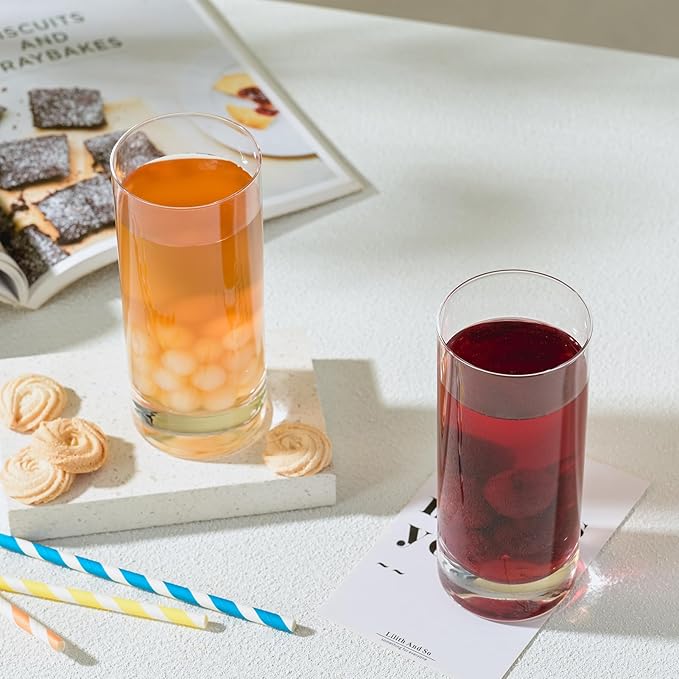 • Versatile Glass: This This exquisite set of 6 highball glasses is crystal clear,so you can see up close what's in the glass, and can be used as a fresh juice glass, milkshake and smoothie glass, beer glass, Tom Collins glass, iced coffee glass