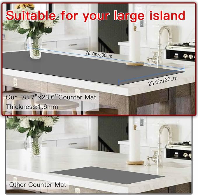 Silicone Mats for Kitchen Counter, 78.7''x 23.6'' (200cmx60cm) Largest Heat Resistant Counter Mat Kitchen Island Waterproof Thicken Non-slip Countertop Protector Mat, Dark Gray