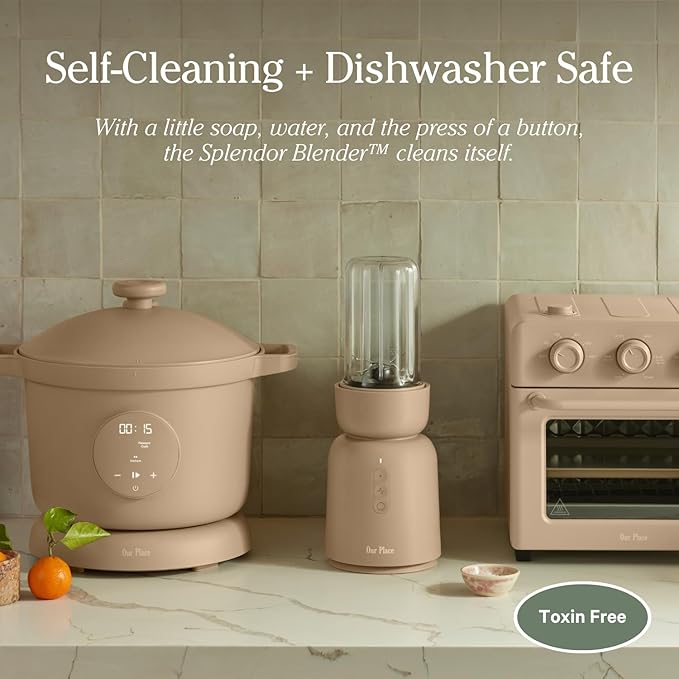 Our Place Splendor Blender - 1000W High-Power | Ultra-Sharp Blades | 2 Blending Modes | Includes 25 oz Personal Cup and Drinking Lid Set | Smoothies, Shakes & More | Char
