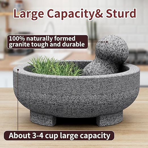 • Excellent Material: The mortar and pestle set is made of 100% natural granite, the texture is hard and safe to use.