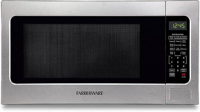 Farberware 1100 Watts Countertop Microwave Oven with Smart Sensor, LED Lighting, Child Lock-for Apartments and Dorms, 2.2 Cu. Ft, Stainless Steel