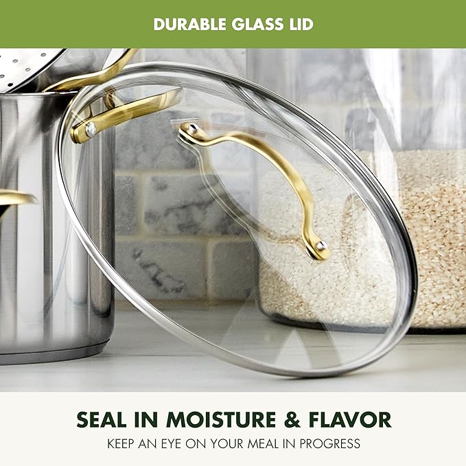 • COOK AND LOOK GLASS LIDS: Tempered glass lids lock in moisture while letting you monitor your cooking without lifting the lid.
