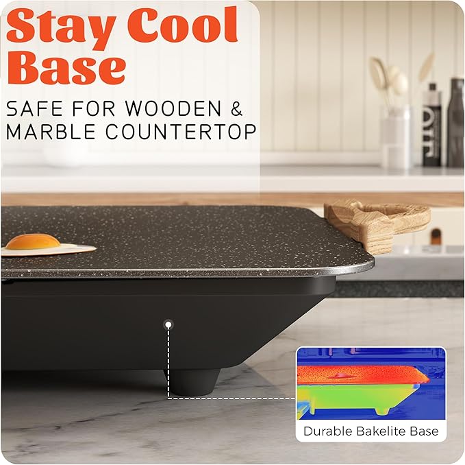 • 3 Years Durable Nonstick: Ultimate Granite Nonstick Coating,Experience 8x more durable than standard coatings *vs typical ceramic electric griddles.