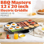 • Extra-Large Cooking Surface: The BBQ Masters Electric Griddle provides an extra-large 12x20 inch surface, perfect for cooking large meals for 8-10 people—ideal for family gatherings or hosting guests