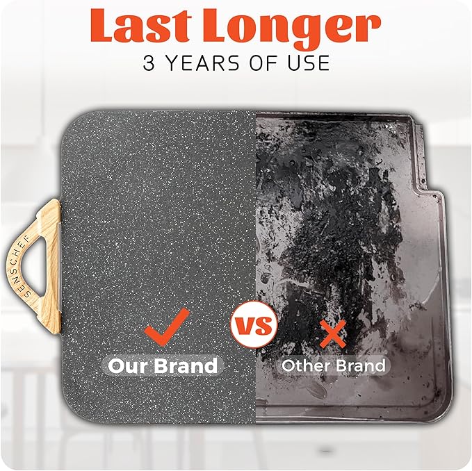 • Perfect for Large Gatherings: Designed to serve 8-10 people, this extra-large griddle is perfect for breakfast, meal prep, or party platters—your go-to kitchen companion