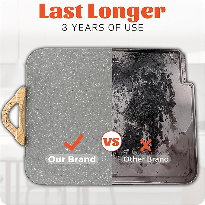 • Perfect for Large Gatherings: Designed to serve 8-10 people, this extra-large griddle is perfect for breakfast, meal prep, or party platters—your go-to kitchen companion