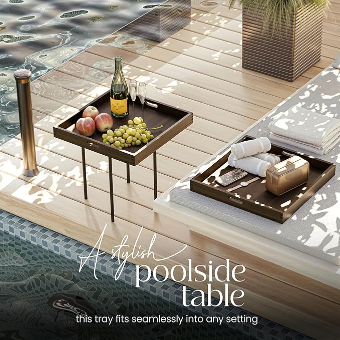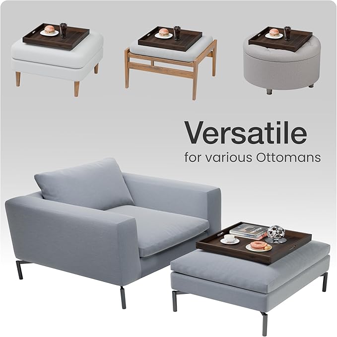 24 Inch Acacia Wood Square Ottoman Tray - Wooden Square Serving Tray - Extra Large Food Serving Trays for Decorative, Coffee Table, Breakfast in Bed - Charcuterie Trays (Walnut Color)