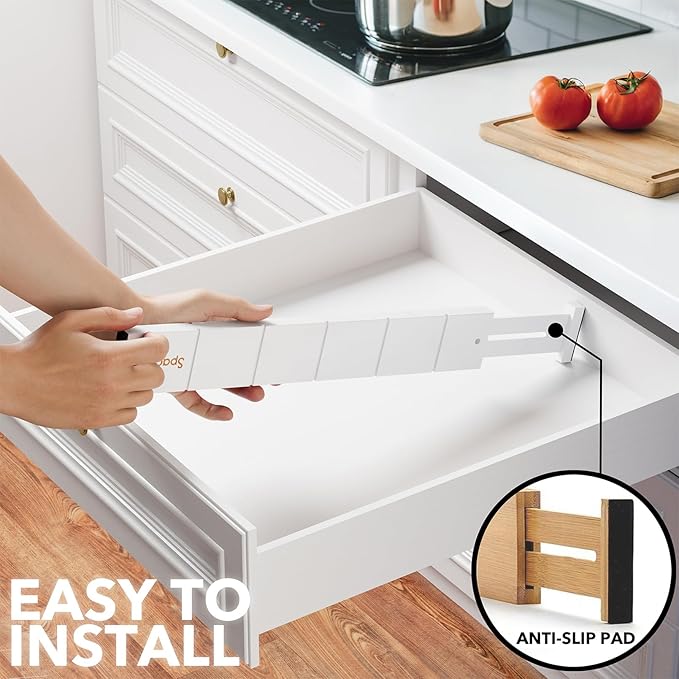 • Drawer Dividers That Stay in Place: Strong spring-loaded design makes them sturdy dividers, with non-slip rubber pads in the end, keeping it stay put all the time and protect your drawers from scratches