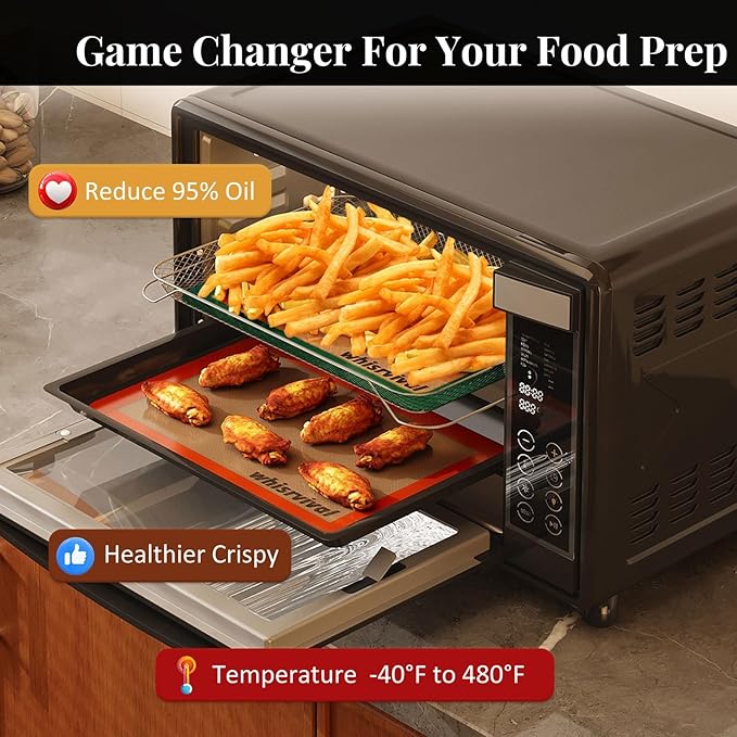• Even Heat, Nice Results: Say goodbye to uneven baking! whisrvival silicone baking sheets for oven provide consistent heat distribution from -40°F to 480°F, so your cookies, veggies, and other dishes come out crispy, flavorful, and perfectly browned every time—no burnt edges or undercooked centers