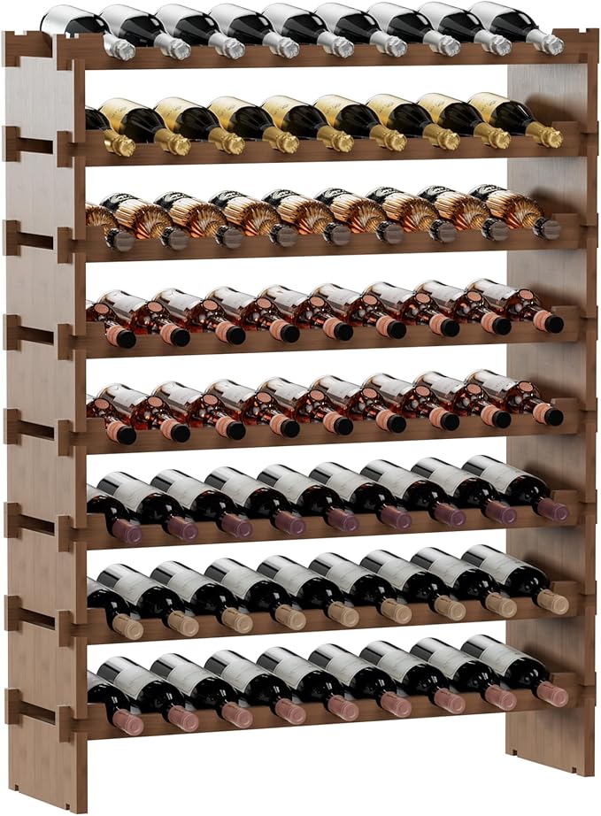 Bambloom Wine Rack Freestanding Floor, Stackable Wine Bottle Storage, Wooden Free Standing Wine Stand Organizer for Kitchen,Cellar. 36 Bottles Wine Holder Display Shelves for Champagne (Walnut)