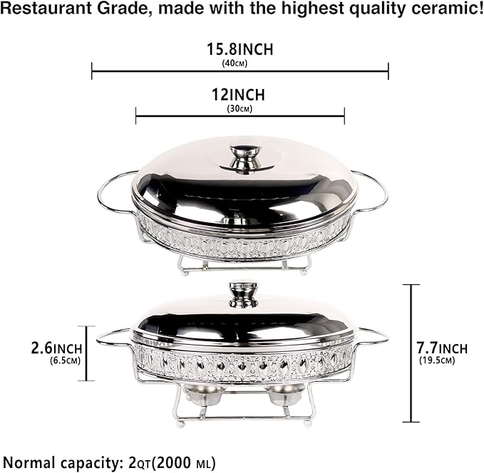 • Good Size For Daily Use - Glass Baking Dish Size 12"L x 8.5"W x 2.6"D inch, Silver rack design include the handle 15.8" L x 8.5" W x 7.7" H Inch(40 cm x 21.5 cm x 19.5 cm) Normal Capacity 2 Quart(2000ML), Each dish is paired with a rack to keep contents warm until serving. suitable for lasagna, Casserole, spaghetti, chicken, meat, beef, roasting, vegetables, storing and reheating leftovers and etc.