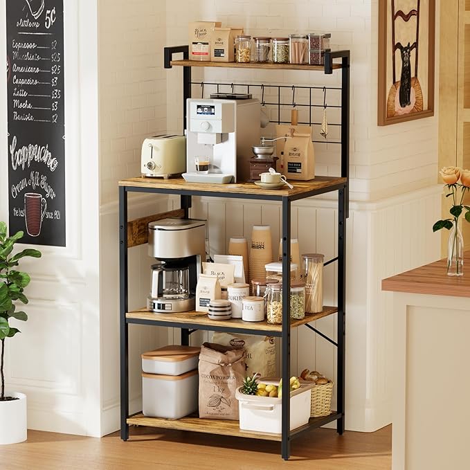 • Multiple Storage Solution: a multi-functional baking rack with ample shelves and S-shaped hooks, perfect for organizing kitchen utensils, small appliances and decorative objects in a well-organized manner.