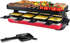 • Ultimate 8-Person Party Grill:Designed for entertaining, this raclette tabletop grill for 8 person comes complete with 8 raclette cheese pans & 8 spatulas. Perfect for family dinners, parties, or Korean BBQ nights. Grill diverse meals from breakfast bacon & pancakes to lunch sandwiches, dinner steaks, chicken, fish, veggies. Portable and compact,meet different grilling and cooking needs.