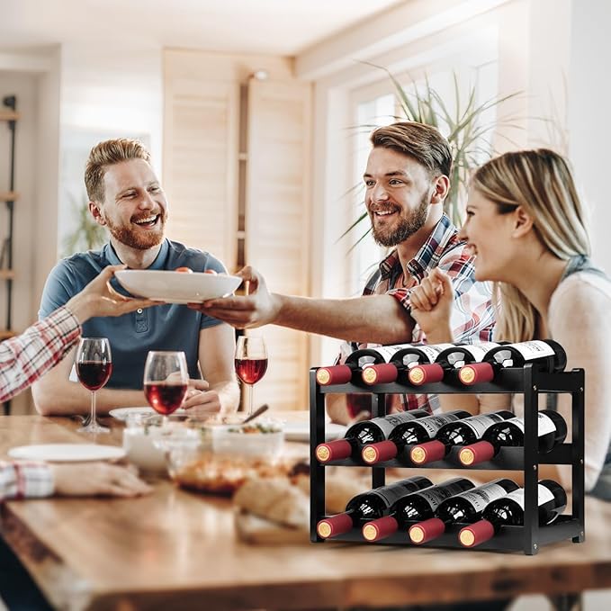 • 🍷【Space Saving】Each wine rack can store 12 bottles of wine, 3-Tier compact design allows it to save a lot of space and hold enough wine.