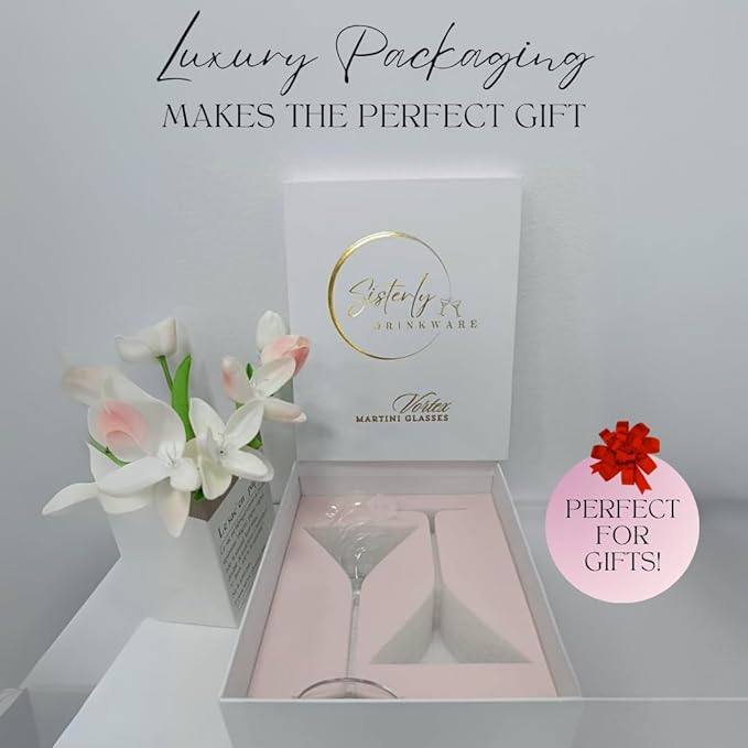 • Innovative Spiral Design: Experience the captivating beauty of our unique vortex martini glasses. The intricate spiral design within each glass creates a mesmerizing swirl effect as you pour your drink, turning every sip into a visual delight. This innovative spiral design not only enhances the aesthetic appeal but also adds a touch of modern elegance to your cocktail presentation.