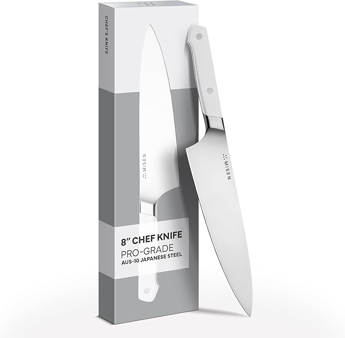Misen 8" Chef Knife – High Carbon Japanese AUS-10 Stainless Steel – Hybrid German & Japanese Blade – Precision Kitchen Knife for Professionals & Home Cooks – Ultimate Cutting Performance - White