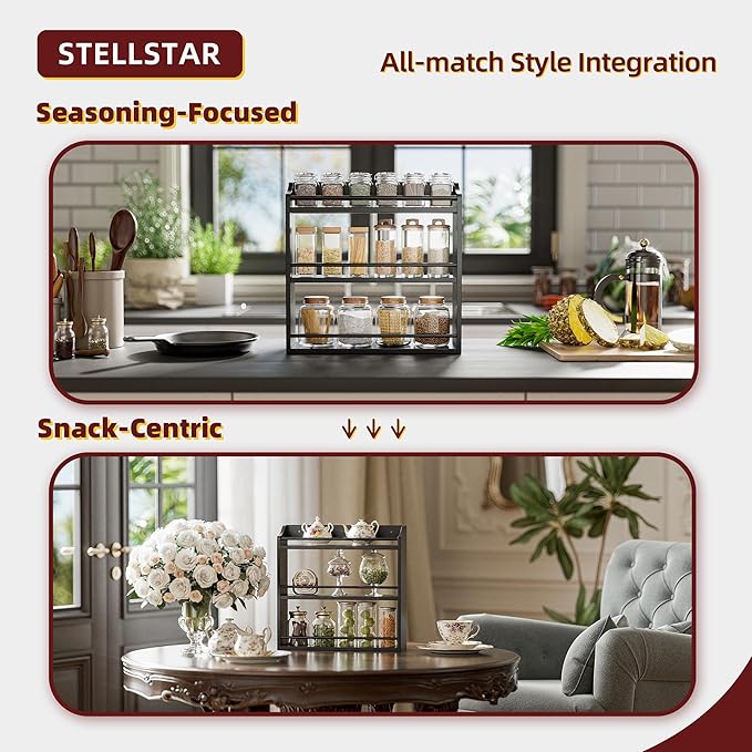 • SIMPLE, ELEGANT & VERSATILE: This rack is both a stunner and a workhorse. Its minimalist design oozes elegance, blending seamlessly with any decor to add warmth. But it’s more than a spice rack! Use it to organize your coffee bar, declutter your bathroom, or neatly stack snacks in mason jars. Wherever you place it—kitchen, pantry, bathroom—it transforms chaos into a tidy, stylish space
