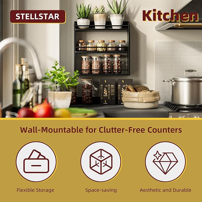 • CABINET, COUNTER, OR WALL, WHEREVER YOU NEED IT! : This freestanding spice rack offers flexible placement options. Set it on your kitchen counter, tuck it into the pantry, or mount it on the wall. It keeps your surfaces clutter-free and maximizes cabinet space, so every inch is used for what matters most