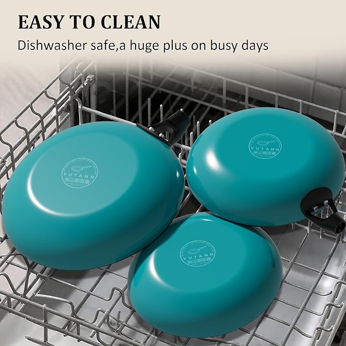 YUTANN Nonstick Frying Pan Set, 8" 10" 12" Ceramic Frying Pans, Pre-seasoned Cast Iron Pan Cookware Set with Removable Handle, Dishwasher Safe, Free of PFAS & PFOA, Compatible with All Stovetops