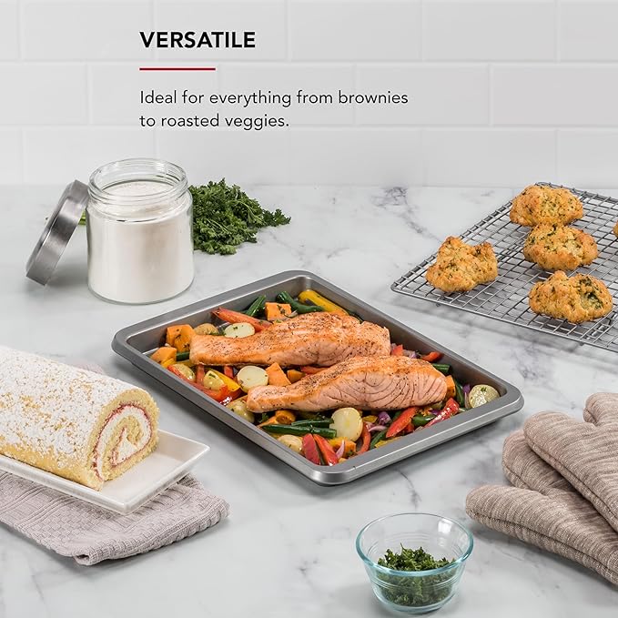 • VERSATILE: great for everyday baking, from whipping up cookies, bars, jelly rolls, and sheet cakes, to making easy one-pan weeknight meals