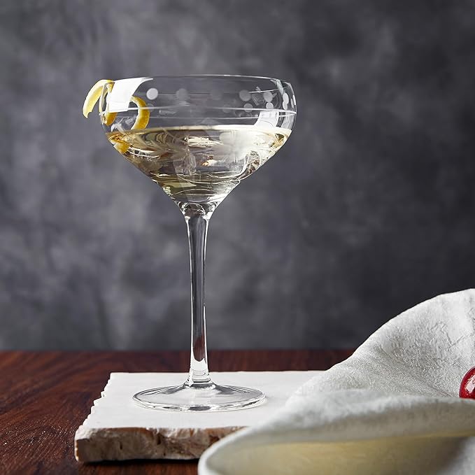 Premium Delight Coupe Glasses Set of 4, 10.8 oz – Hand-Blown with Etched Long Stem, Classic Glassware for Weddings, Dinners, and Holiday Gifting (Coupe Glasses)