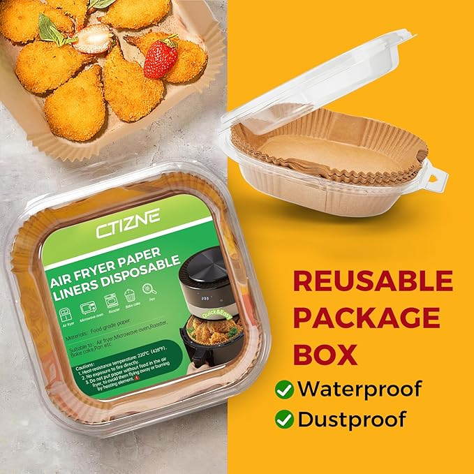 • Air Fryer Companion: The airfryer paper liners are packed in a transparent plastic box, which is waterproof and dustproof, and can be hung. You can clearly see the remaining amount of air fryer paper. Easy and ready to use.