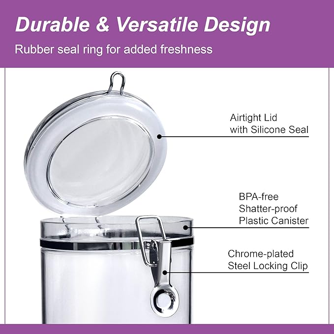 • [WORRIES OUT] Made of food-grade high-quality acrylic plastic. BPA-free and lead-free. Shatter-proof and break-resistant. With its premium material and sturdy construction, the canister is safe and durable for your everyday use.