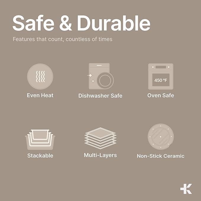 • NONSTICK & DURABLE – Crafted with PFOS and PFOA-free ceramic-granite coating that’s safer for health and 10x more nonstick than standard cookwares, ensuring easy food release and cleanup. The coating can also withstand temperatures for up to 400°F/205°C.