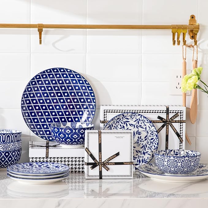 • Exquisite Artisan Design Inside and Out: Unlike ordinary bowls, our soup bowls feature full artistic expression with unique blue floral patterns on both the interior and exterior. Each serving bowl has slight variations, offering the charming character of handmade artistry from every angle, even when empty on the table.
