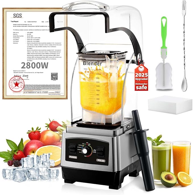 2025 Upgrade Commercial Blender | SGS German Super Motor 2800W| Dishwasher Safe | 6-Piece Japanese Blades, 3-Second Quick Ice Crushing |Quiet Blender for Juices and Smoothies, New